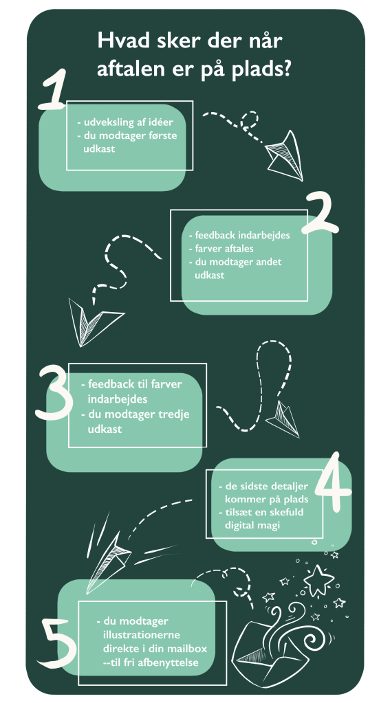 Hvis du nu sidder og tænker, “Men jeg skal bruge MANGE illustrationer! Det bliver dyrt!” så er der også råd for det. Jeg har nemlig udviklet pakkeløsninger, specielt til forlag og spirende forfattere.