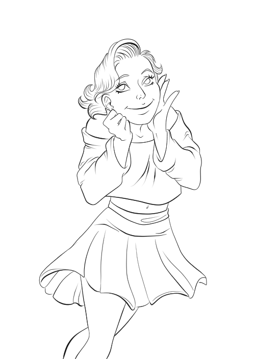 “Det simple udtryk” dækker over en enkelt illustration af en karakter/figur, som du ønsker tegnet. Her er der tale om en lineart illustration.